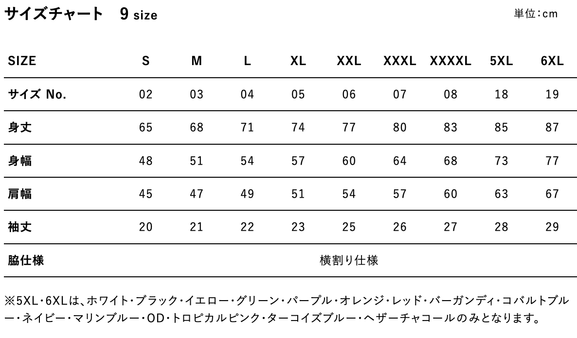 | サイズ | S~6XL |